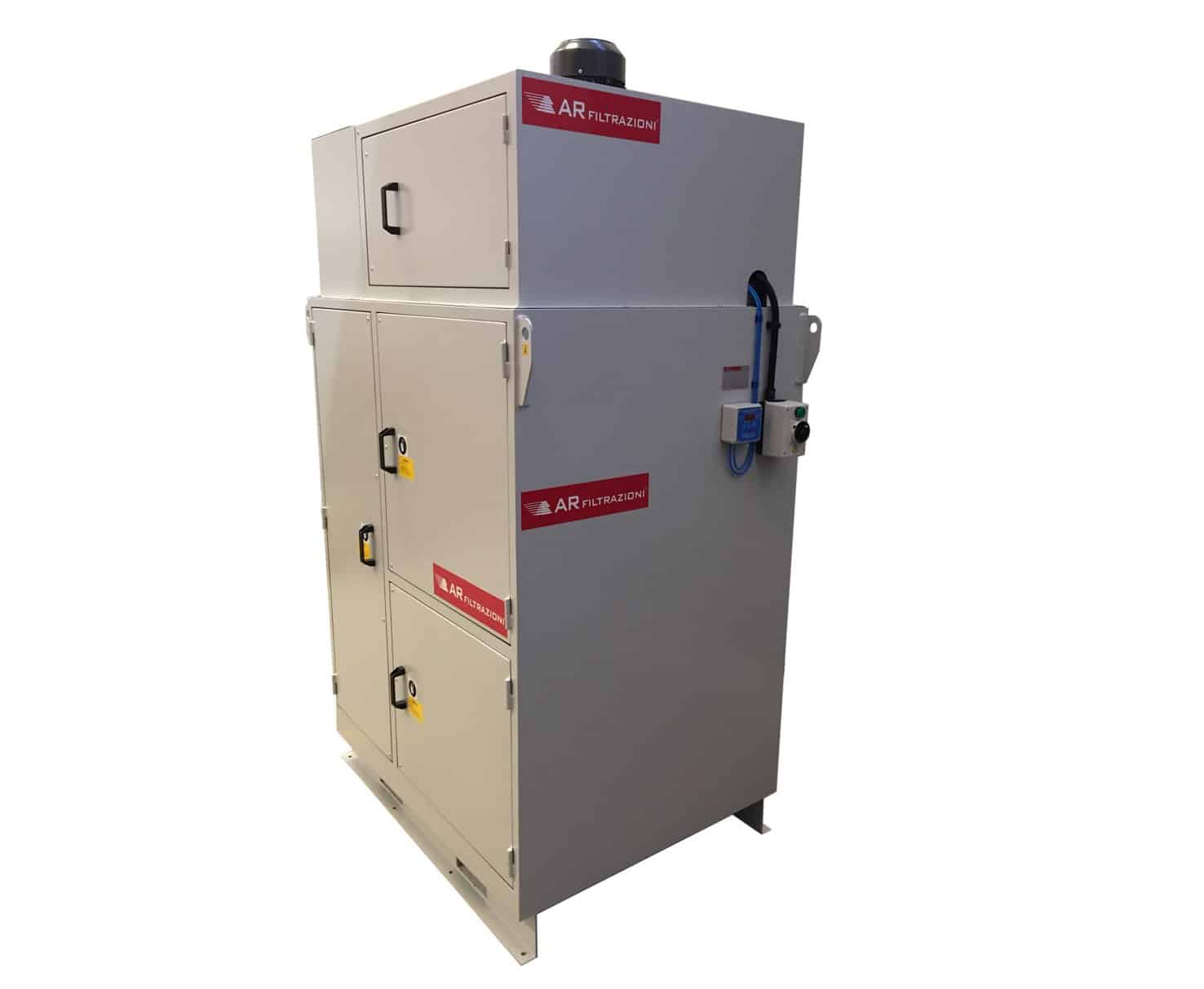 Geeignet für die Absaugung und Reinigung von großen Mengen von Ölnebel, Rauch und Mikronebel durch verschiedene Filter, mit unterschiedlicher Filtrierleistung. Ausgerüstet mit einer Filterstufe mit einer hohen und sehr hohen Filtrierleistung nach der europäischen Norm EN 1822, der eine Filtration von 99,995% der Partikel eines Volumens von > 0,15 µ (der mittlere Durchmesser der Rauchpartikel ist immer < 1 µ) nach europäischer Norm EN 1822. Die Anlage kann mit einem Vor-filter ausgestattet werden, mit einer Drainage, um Flüssigkeiten zurück zu gewinnen, mit einem Motor der Klasse IE3 mit einem geringen Energieverbrauch, mit einem Motorschutzschalter, sowie einer Sichtkontrolle für die Filterverstopfung.