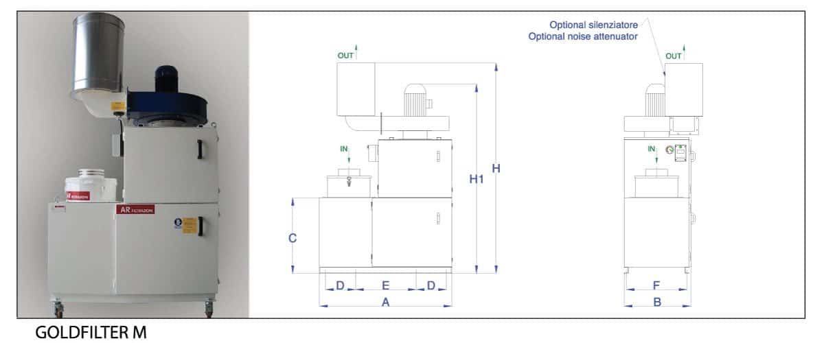 Die GOLDFILTER Serie besteht aus 3 Modellen mit einer Luftleistung von 2000 bis 3000 MC /h; geeignet für die Reinigung von Partikeln mit unterschiedlicher Größe, indem verschiedenen Filter mit unterschiedlicher Filtrierleistung eingesetzt werden.